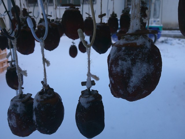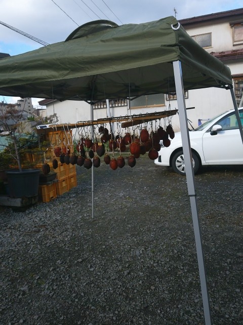 いくつかの原則があるようです。それは、適度な「日当たり」、「風通し」、そして「寒気」です。「干す」期間は、今頃から「寒中」にかけての2~3ヶ月間のようです。