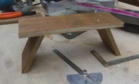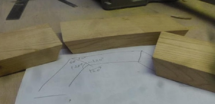 今日は、ビスケットによる接(は)ぎの「強度」の確認がテーマです。脚を120°の角度で取り付けた椅子をつくってみます。実際は60°に関係する加工のようです。強度もさることながら、ジョイナーの定規(じょうぎ)の捌(さば)き方も曖昧だったのです。