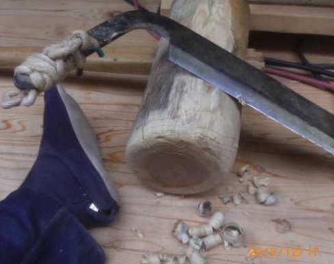 その杵は、ケヤキ(欅)です。そして、まだ割れの入っていない新しいものです。朝から、その工房の隅に置いている杵(きね)探しです。漸く(ようやく)発見します。狭い工房内での杵(きね)探しで、一汗をかきます。やはり、新年が間近のようです。