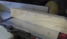午後の数時間、工房に入ります。今日は鉋(かんな)がけです。昨日製材したケヤキとミズナラです。まず、「手押しカンナ」を使います。まず一面の平面化を図り、その後、その平面を定規(じょうぎ)にして隣の面を平面化します。