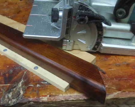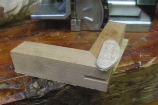 この時点で、この「留め形相欠き接ぎ」は採用しないことにします。残されたのは、これまでの「簪(かんざし)」を挿し込む方法です。しかし、折角の機会でもあります。「ビスケットジョイナー」を検討したくなります。