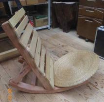 英語では「legless rocking chair for use on tatami」になるようです。実際は、このようなものがあるかどうかは定かでないものです。或いは、世の中には歓迎されない存在なのかも知れません。