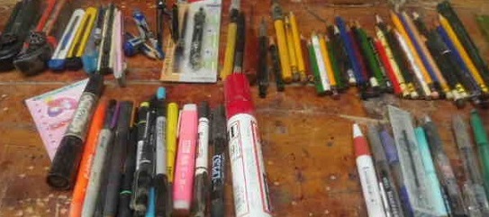 さて、工房では今日も大掃除です。4日目になるようです。今日は、細々(こまごま)したものの整理整頓です。鉛筆、シャープペンシル、マーカー、マジック、コンパス、カッターナイフ、鋏(はさみ)、替え刃等です。