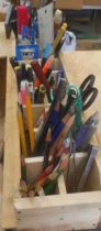 まとめたものをあらためて見ると驚きの世界です。円筆もそうですが、カッターナイフは8本もあります。無い、と思っていたコンパスは3つです。まだ手をつけていないものもあります。