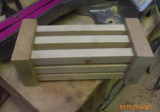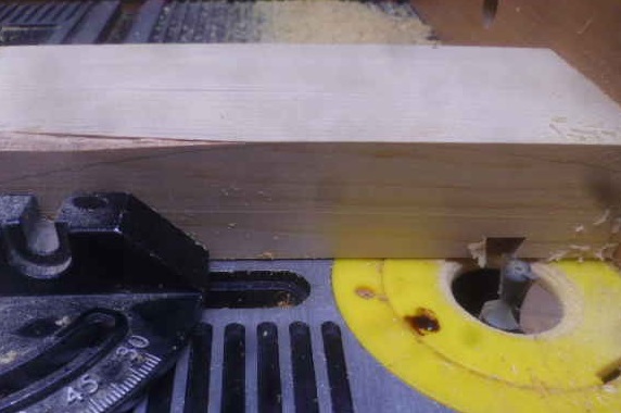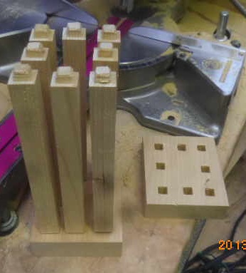 それをプレナーに通し、「坊主面ビット」で「面取り」します。形的には、ほぼ、期待通りの結果が得られます。しかし、外に出す作品となると完璧さが求められます。徹底的なペーパーがけが必要となります。木地調整の不十分のまま、組んでみます。この段階ではまだ仮組みです。仮組みであっても、バラける心配の無いホゾ組みです。