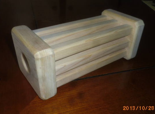 しかし、今回は頭や頬(ほほ)に、直接触れる「枕」です。汚れでの黒光りは、枕にはマッチングしないようです。青森ヒバ自体の美化とともに、清潔さの演出のための塗装を考えます。これからの課題です。