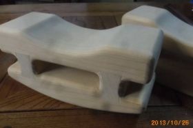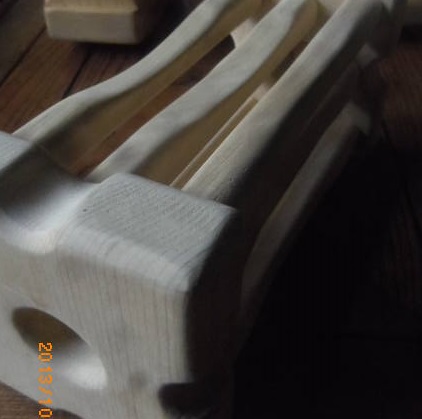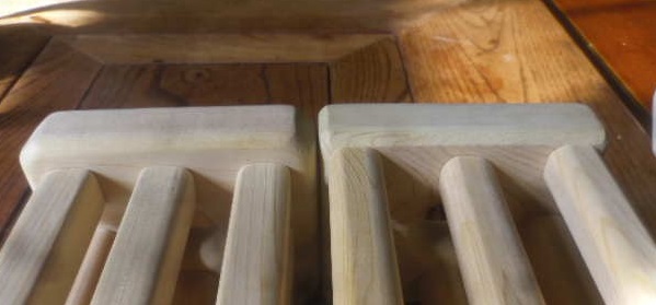 この解決として、頭を載せる部分に撓(たわ)みを持たせてみます。やはり、大きく変化します。昨日は、1面の3本の桟(さん)にカーブをつけます。しかし、その加工には、結構な時間を要します。