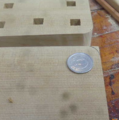 しかし、今回は1回目です。結果の如何だけを求めることが目的です。この段階での丁寧な加工は、然程の意味を持たないようなのです。その所為(せい)か、多少?左右のホゾ孔の位置が頓珍漢になったようです。