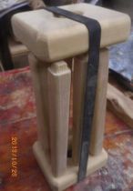 また、8本のポールを格子(こうし)と見れば、「檻(おり)」のようでもあります。昨日、大雑把につくり、様子を確認します。今日は、「面取り」と木地の調整です。