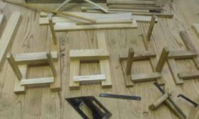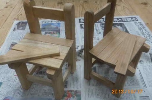 実は、昨日つくった椅子の高さは450mmでした。座板は250mmの高さです。この値は、3~6歳用です。幼児には大きすぎて使い難い大きさです。これを2/3に縮小することにします。
