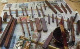 少しの時間ですが、今日も工房作業を楽しみます。エンジュ(延寿?)の製材です。
