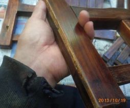 2/3の2/3は、4/9です。後ろ脚の高さの450mmが130mmになる筈です。面白そうです。気力が伴えば、その2/3も考えたいところです。結果は、座席の高さは、ほんの75mmです。