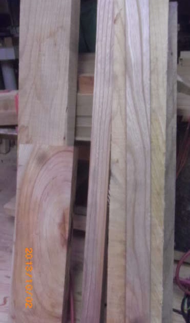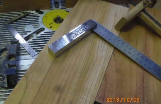 実際につくってみます。まず、具体的なピースづくりです。1辺が200mmの正方形、そして直径200mmの円を基本形にします。素材については、当初は、色合いの異なる材にするつもりでした。しかし、適当なものが見当たらなく、青森ヒバとエンジュにします。