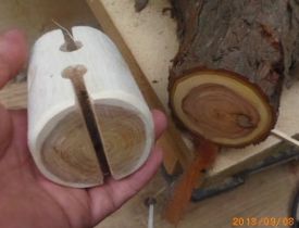 次はシダレイシです。伐りたい枝は、地上3mほどの数本です。年齢的には少し怖いのですが、梯子(はしご)に登ります。そして手鋸(てのこ)を使います。チェンソーであれば一瞬ですが、安全面に配慮します。
