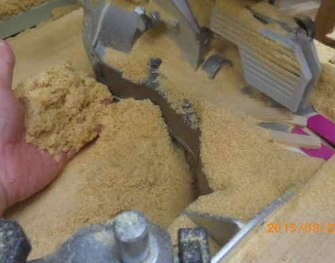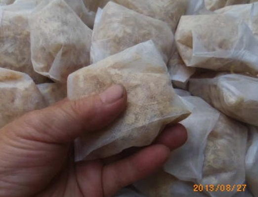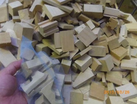制作の合間(あいま)に「お土産づくり」です。「合間」とはいうものの、数時間を要します。「匂い袋」です。これは、「青森ヒバ」の「カンナくず」です。