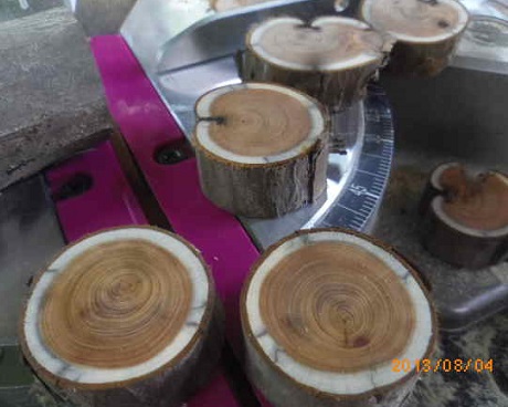 これは、10年ほど前、剪定(せんてい)で出た枝を乾燥させていたものです。切り口は、流石(さすが)一位です。肌理(きめ)が細かいです。