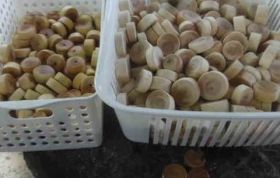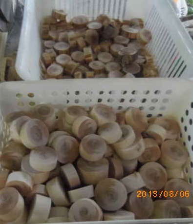 前回は200個ほどでした。今回は300個ほどつもりでした。しかし、実際は、280個ほどです。実は、「訳あり」のものが20個ほどあります。具体的には、虫の這(は)った跡があるもの、カットが斜めになっているもの等です。