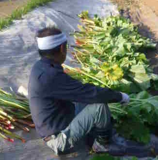 早朝、K社長から連絡があります。『良く成長している。収穫します。』ということです。ルバーブのことです。早速、畑に行きます。『5:30から作業をしています。雨が欲しいです。』と意気盛んです。