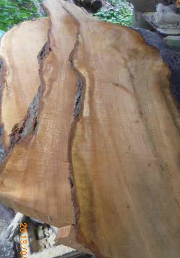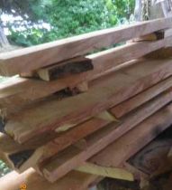今日の工房の課題は「製材(sawing)」です。材はプラム(plum)です。数年前、ご近所の庭から伐り、Y製材所で挽いていただきました。それを自然乾燥させていたものです。