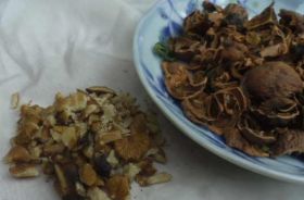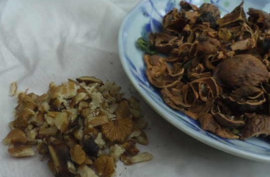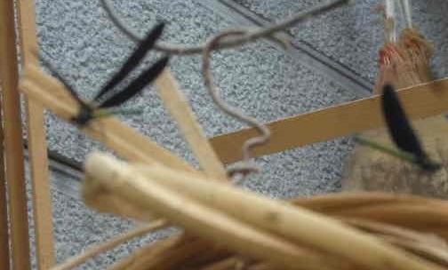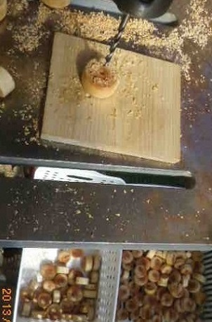 この枝を、数年前、伐採現場から持ってきています。枝の皮を剥(は)ぎ、2~3年は自然乾燥されています。当初は、「笛(ふえ)」の材料に考えていたものです。それを使ってみます。