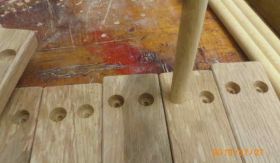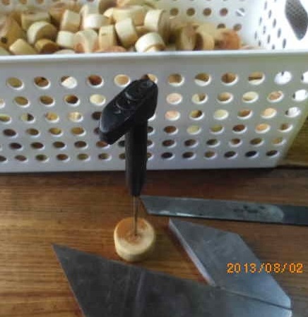 今日は、「車輪づくり」の予定でした。これまで、市販の丸棒を使っていました。しかし、何かが変なのです。市販の丸棒の殆どは「青森ヒバ」ではつくられていないのです。
