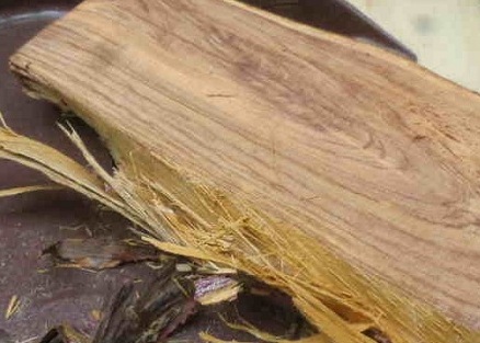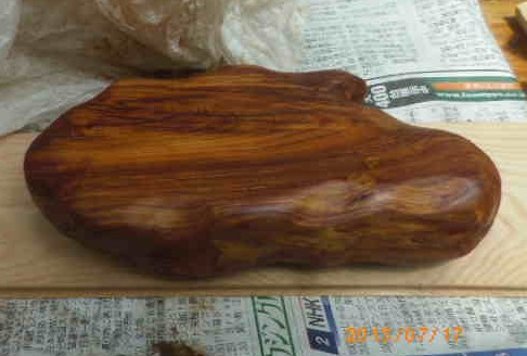 次は、全体の磨きです。結構頑張って磨きます。この段階のイチイは、丁度、焼く前のステーキに似ています。アマの白い部分が脂身です。まあまあ、です。