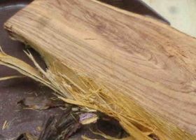 簡単な作業ですが、長時間に及びます。4時間、ぶっ通しです。少し、根性を要します。淡黄色の青森ヒバが、「生漆(きうるし)」を塗って拭き取ると、赤味を帯びてきます。やがて数分の時間を経て、黒っぽい赤になります。