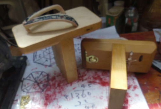 午後は工房活動です。気になっているあれやこれや、に手を掛けます。まず、「一本歯」の「鼻緒挿げ」です。これまで、10足ほどの鼻緒を挿げています。しかし、毎回、その方法は変化しています。