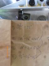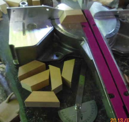 そして、加工中、困ったことが出てきます。60°の1/2の30°の作り方に戸惑います。丸鋸(まるのこ)の目盛は0°から45°までです。30°の余角(両者の和が90°になる角度)の60°の作り方に迷います。