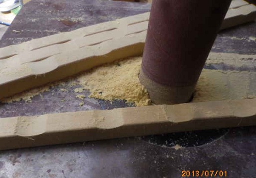 次は「鉋がけ」です。今日の本来の課題でした。しかし、「塗り」の作業が優先されたのです。実は、プレナーには集塵機を使っていますが、その集塵機で漉(こ)し切れない微粉末が工房内に充満するのです。「塗り」は、早朝一番の仕事にしています。