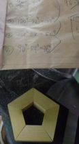 さて、我が工房では、作業の合間に、今日も試作です。実は、ここ数日、「車」をテーマにしています。白紙状態からのスタートです。当初は、様子の確認のため、6角形から始めます。しかし、昨日は5角形を模索してみます。