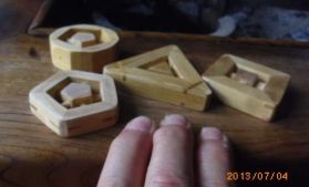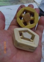 午後、試作にとりかかります。実は、昨日、6角形をつくりました。古典的な「車」をイメージしたつもりです。実際の用途としては、「鍋敷き」や「ストラップ」に使えそうです。秀木の「青森ヒバ」です。おそらく、世界中で唯一の作品の筈です。