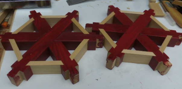 「糸巻」をつくっているところです。昨日、第一回目の塗りをします。朝は乾いています。即、組立てもいいのですが、設計に手を加えることにしました。強度を高めるためです。今のままでは、上下からの圧縮には強いのですが、左右の加圧に弱さがあるようだったのです。