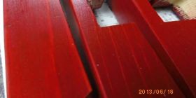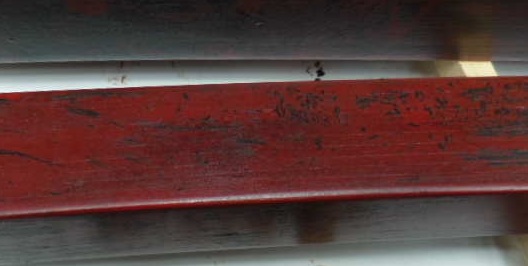 しかし、木地の木目が浮かびあがることが魅力です。拭き取った後の色は塗った直後と変化しています。深い朱になっています。