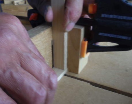 次は、桟のパーツづくりです。桟の厚さがホゾの溝幅と一致することが第一条件です。無理やり嵌(は)め込むと、相手がパーンと欠けることが考えられます。この脆(もろ)さは、雑木とは違う青森ヒバの特性です。