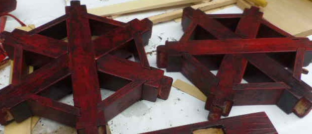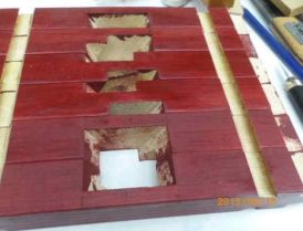 今日の工房活動は「塗り」です。しかし、その前にすべきことがあります。まず、数個のパーツの作り直しです。実は、昨日組立た際に若干の隙間を生じていました。当初、「埋め木」も考えたのですが、作り直した方が簡単そうだったのです。