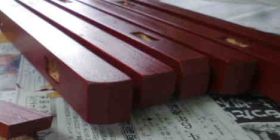 今朝つくった12ピースの桟材は一回目です。実は、今回の「拭漆(ふきうるし)」は、塗り重ねる回数を決めていませんでした。やはり、一回だけではパサパサ感があります。あと数回は繰り返すことになりそうです。
