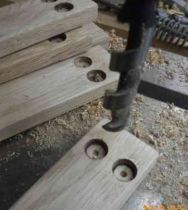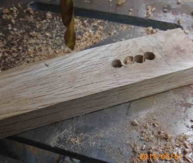この手順に従って、いざ、作業開始です。取り敢えず、一か所のホゾ孔をドリル(ボール盤)で下拵え(したごしらえ)をしてみます。ま、何とかなりそうです。