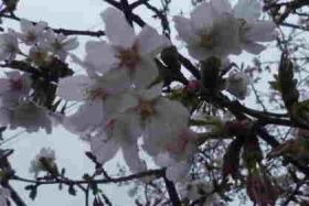 しかし、自宅近くのT旅館の駐車場の桜が咲いています。葉も出ていることから、おそらく、ソメイヨシノではないようです。