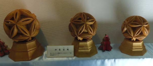 次は他の作品の鑑賞です。何れも、つくる時間が伝わる丁寧な作品ばかりです。特に興味深いのは「宝珠」です。昨年も出品されていたものです。1個の青森ヒバの塊からつくられています。
