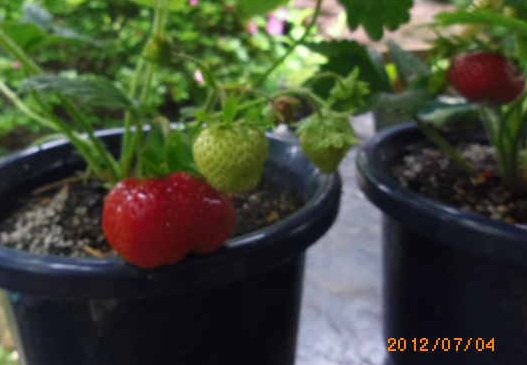 今春、植えるのを躊躇(ためら)った中にイチゴ(苺)があります。しかし、赤い色の誘惑に勝てずに2鉢だけは植えます。