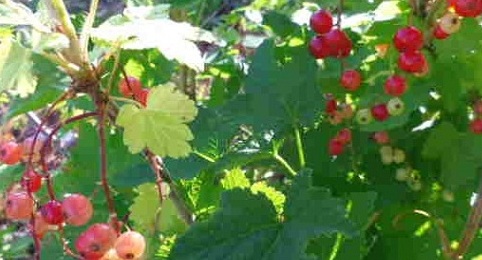 スグリにはたくさんの種類があるようです。友人宅には、カシス(仏語Cassis)、グズベル(Gooseberry)等の数種類があります。カシスは赤く色づき始めています。グズベルは我が家のものの7~8倍もの大きさです。