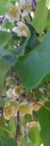 「キウイ」が咲いています。まだ雄花(おばな)だけです。雄花が散るころに雌花(めばな)が咲く筈です。毎年500個ほどの実がなりますが、昨秋はほんの少しだけでした。