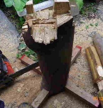 久しぶりの木工活動です。一週間ぶりです。貪(むさぼ)るように、あれもこれも、と手をかけます。その一つが「台づくり」です。全てのカット作業をチェンソーで熟(こな)します。