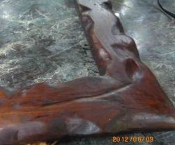 得点の低さは、全体の雰囲気にあります。実は、ワイルドな作品にするつもりが、やや、立派になり過ぎたのです。フレームは「槐(エンジュ)」です。それに漆を塗ったことから豪華絢爛になり過ぎた所為です。