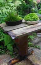 材料は、クリ(栗)、青森ヒバ、そしてスギ(スギ)です。加工の多くは相欠(あいじゃくり)です。植木鉢を置くスタンドです。キチッとした加工は寧(むしろ)庭には似合わないようなのです。頑丈でありさえすれば、アバウトな加工でも十分です。ま、何とかなったようです。