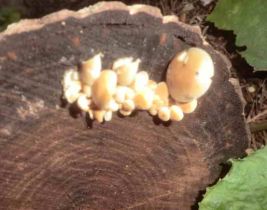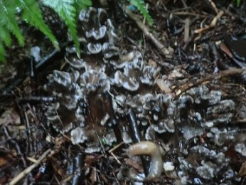 いつものように、庭を探索します。まず本命のマイタケの様子です。最近見たのは4~5日前です。その時とは顕著に変化しています。