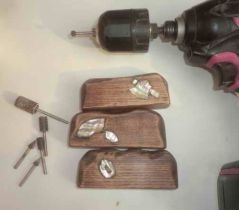 貝に付着した漆をはじめ、溝から食み出た部分等を削除します。そして、貝の出っ張った凸部分を削ります。しかし、本来?の「嵌入(かんにゅう)」は、貝が凸に出っ張るのが正解のようです。