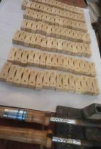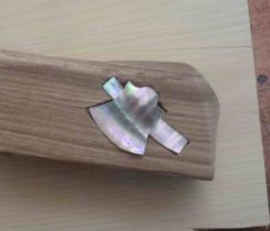 その脚はカーブを描いています。これに刀貝を使うことにします。アワビ貝には、それぞれの部位に名前がついています。縁の最も硬い部分が刀貝です。その脇が耳貝、それ以外を破貝というようです。琴柱の脚にはカーブしている刀貝が適当のようでした。