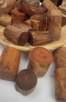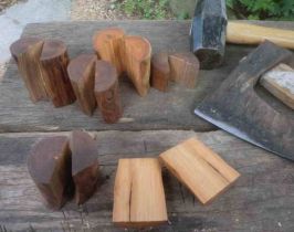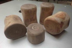 それとは別のペーパーウェイトです。以前、2寸ほどにカットしたものがあります。イチイとエンジュです。これを2つに分割して内部に詰め物をして復元する方法です。2つの分割方法は、多くの皆さんが鋸引きのようです。